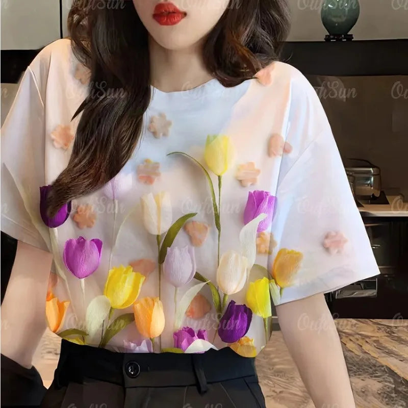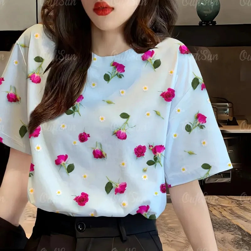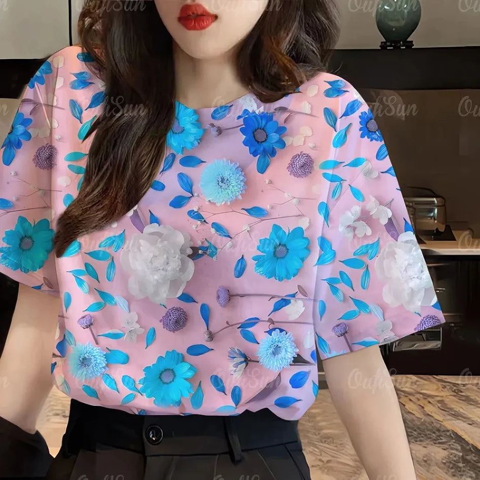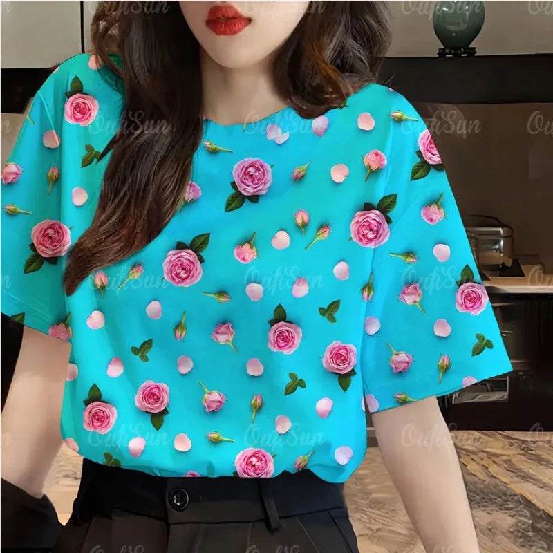 Women's Casual Fashion Loose Temperament Elegant PrintingT-Shirt Top Tee O-neck Short Sleeve Camouflage Summer Pullovers