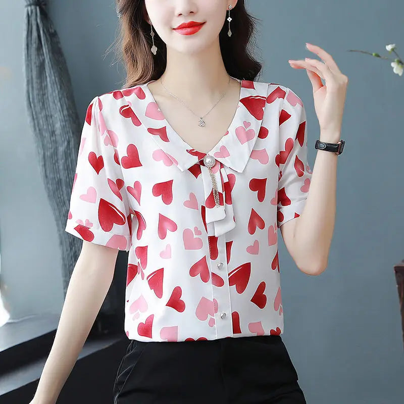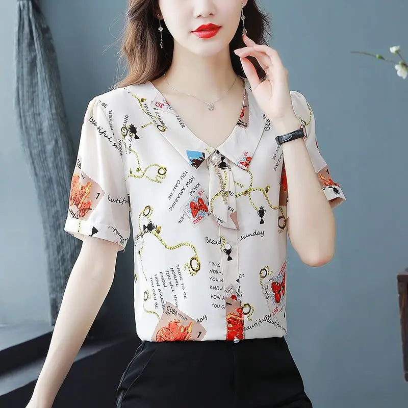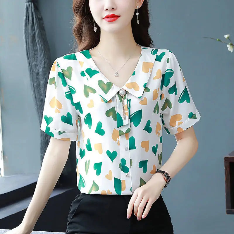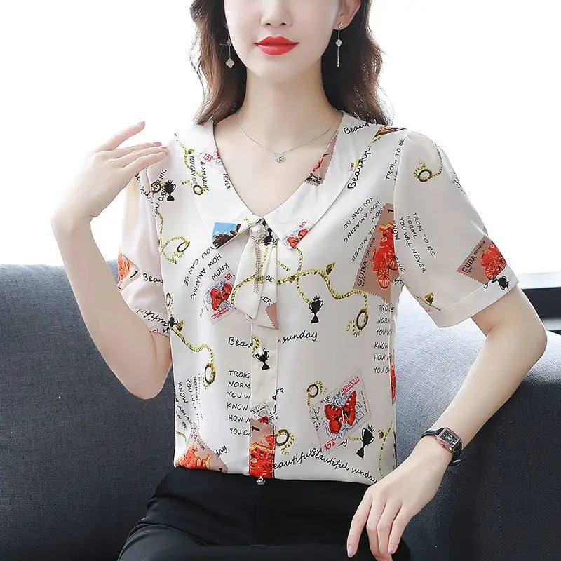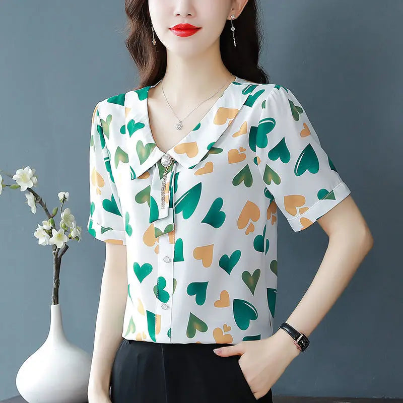Chiffon Blouse for Women Short Sleeved Summer New Style Tops for Middle Aged Mothers Fashionable Slimming